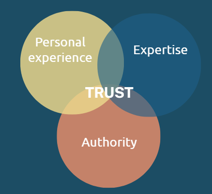 Trustworthiness brings everything together. It means being transparent about who wrote the content, where the information comes from, and when it was last updated.