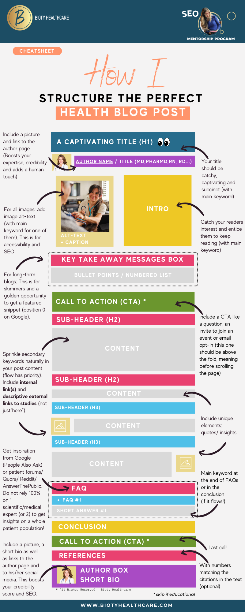 Example of a health blog structure (simplified). Source: SEO health writing mentorship program (Bioty Healthcare)