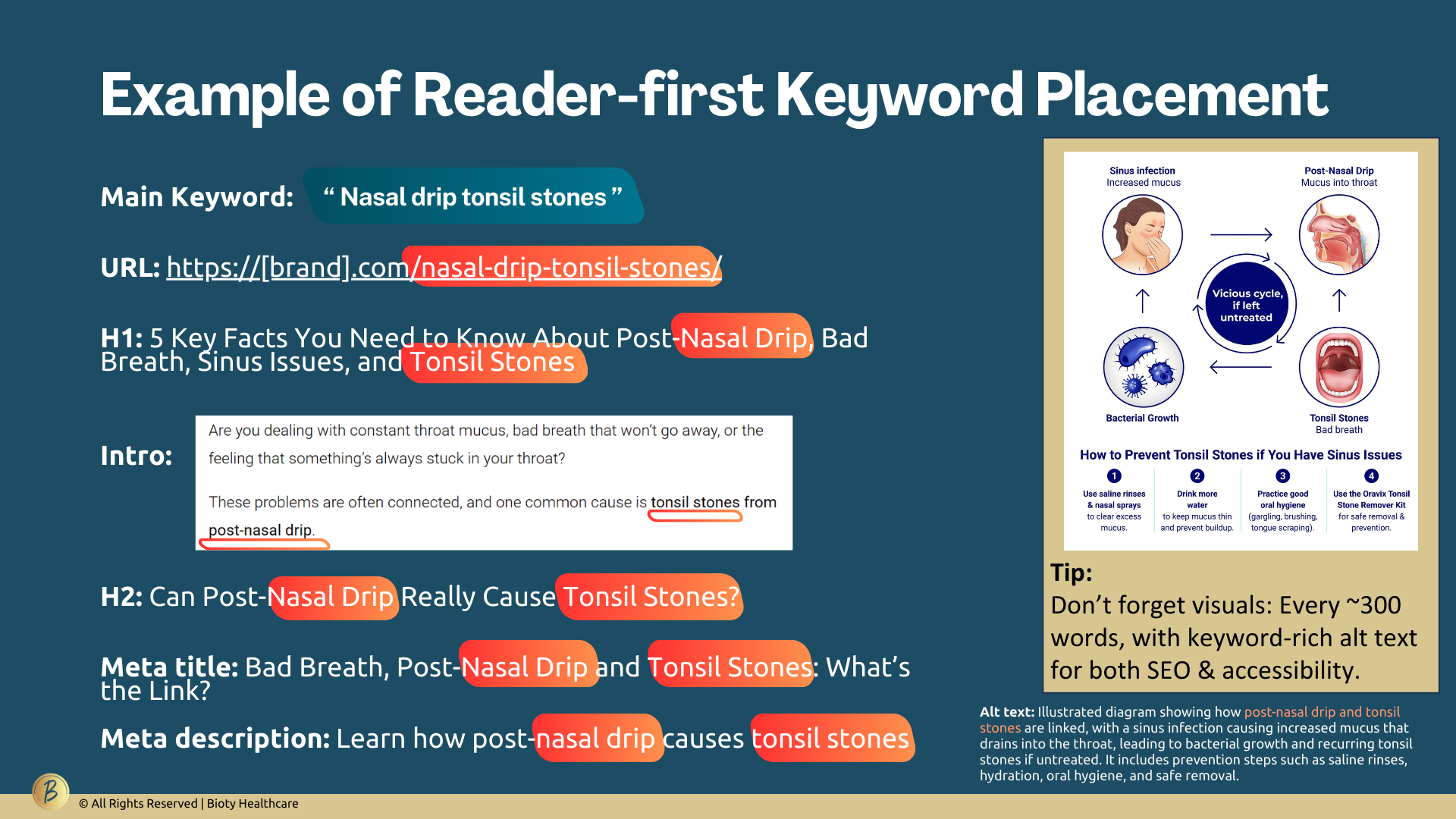 Example of keyword placement in a real health blog. Source: Extract from the SEO Best Practices webinar.
